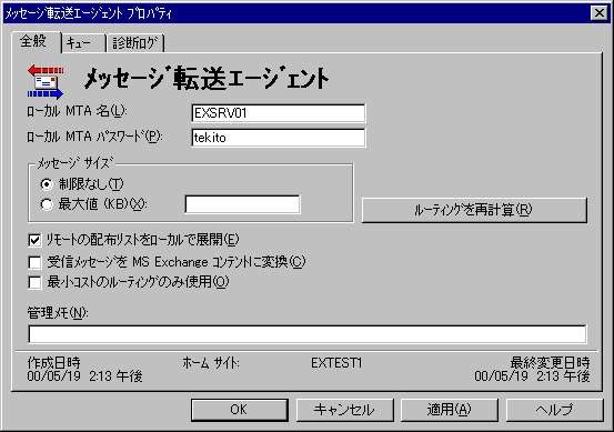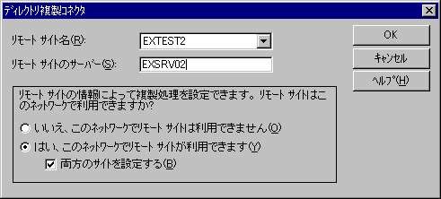 - 「リモートMTA名」・・・接続先サイトのMTA名を設定します