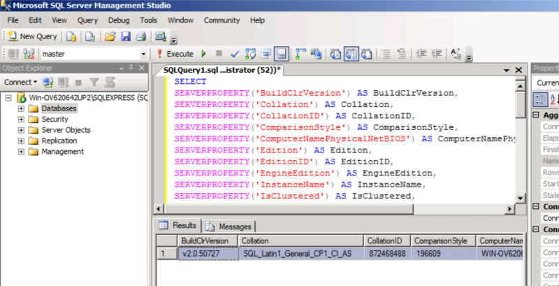 とのご意見を頂いたので、作った環境の SQL Server の照合順序等がどうなってるか調べてみました。