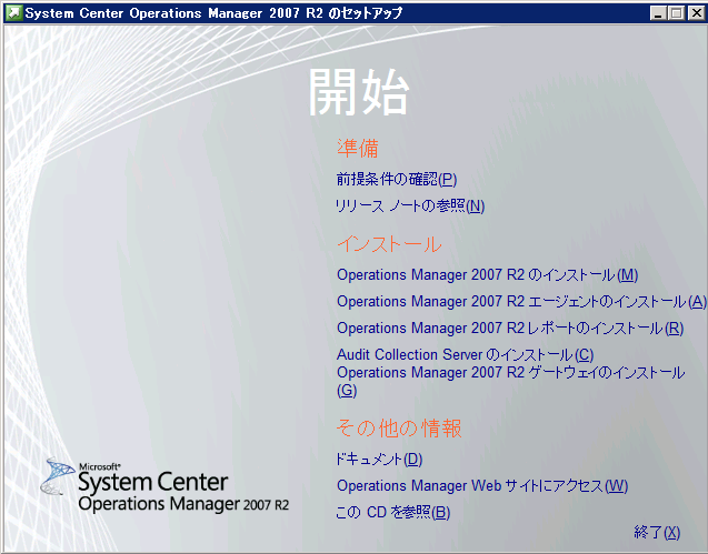 ※異なる環境で実行する場合はこちらを参照して確認ください → Operations Manager 2007 R2 でサポートされている構成