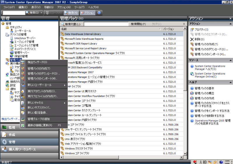 正しく表示されたら、”管理”ペイン内を右クリックしてコンテキストメニューから”管理パックのインポート”を選択します。