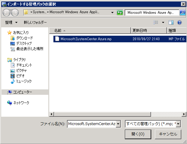 次はより便利に管理するために、Windows Azure 管理パックを利用できるようにインポートします。