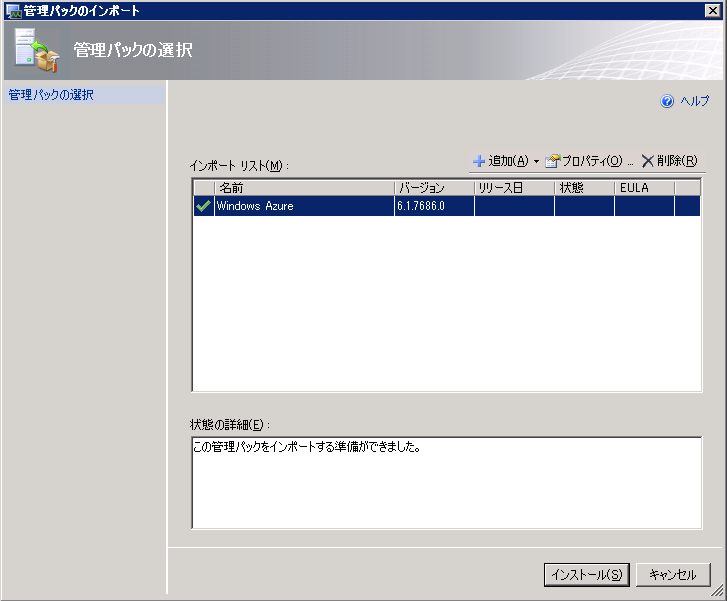 Windows Azure 管理パックのインポート