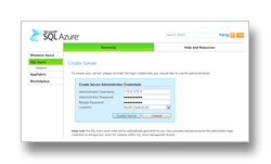 まずは公開するためのDBを用意します。SQL Azure 開発者ポータルに接続して、Create Server でサーバーを作成します。