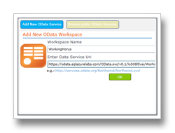 左の一覧に SQL Azure OData Service タブがあるのでクリックし、先ほど作成した SQL Azure 上のデータベースへ接続します。