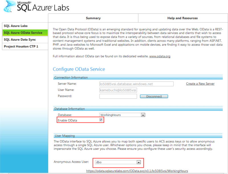 注意:現時点でSQL Azure OData Service はまだLabs(開発者用環境)でのリリースです。本ポストの内容は将来的に使えなくなる可能性がありますので注意ください。