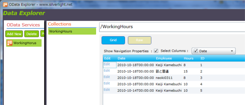 ということで、 OData Explorer を使って接続してデータを取得してみたいと思います。