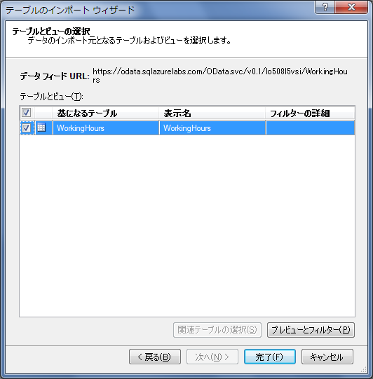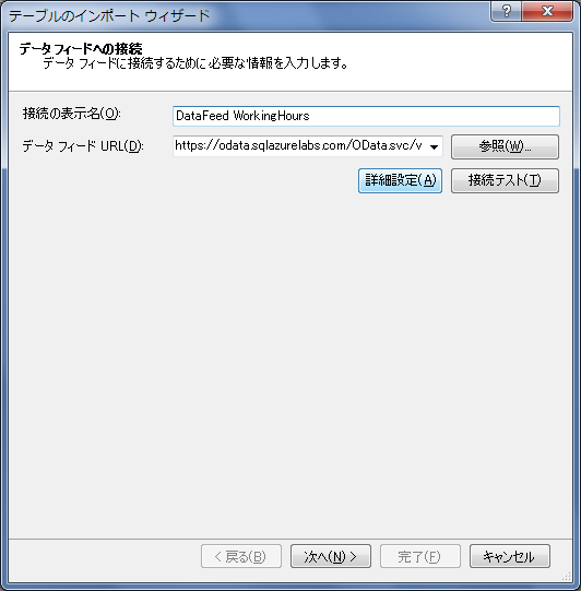 データフィードURLには先ほどと同じODataへのURIを入力します。