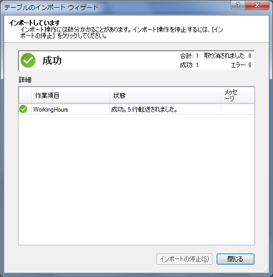 問題が無ければ、テーブルが表示されますので、テーブルを選択後データをインポートして完了します。
