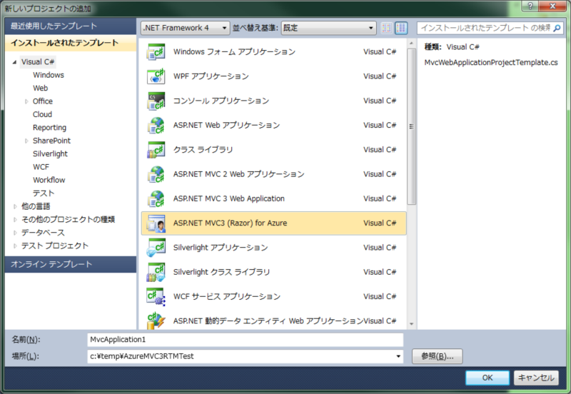 ※詳しくは 割と普通 さんの 記事「ASP.NET MVC3 RTMをWindows Azureで動かす!!~懇切丁寧な解説付き~」を参照ください