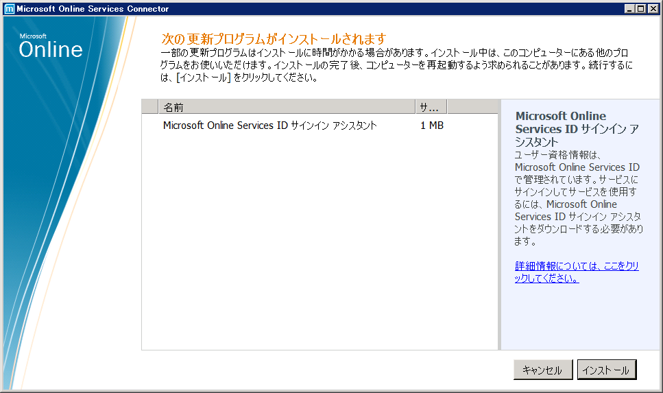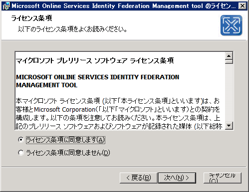 さて次にMicrosoft Online Services IDフェデレーション管理ツールをインストールします。
