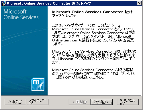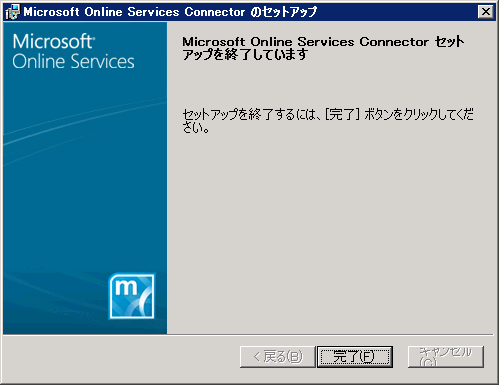 まず最初にADFSサーバー(というよりはMicrosoft Online Services IDフェデレーション管理ツールを実行するコンピューター)にMicrosoft Online Services Connectorをインストールします。