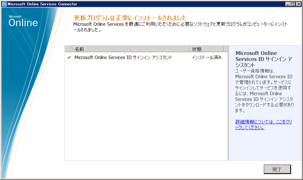 詳細:Microsoft Online Services ID フェデレーション (連携) 管理ツールをインストールして構成する