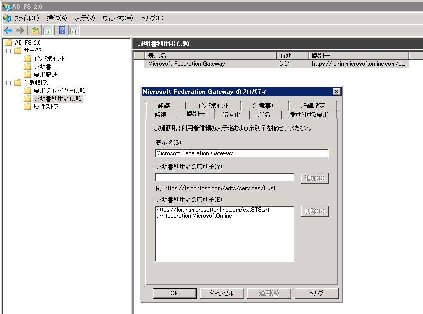 Microsoft Online Services IDフェデレーション管理ツールのインストールと設定