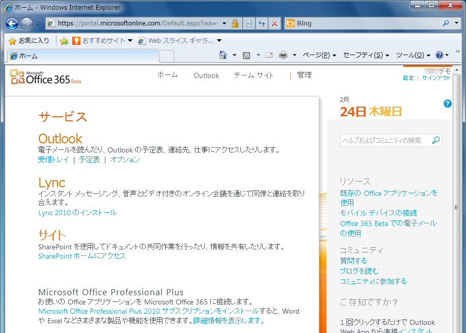 またMicrosoft Online Services Connectorをインストールした端末であればLyncやOutlookも自動ログオンで起動することができます。(※ただおいらがテストしたケースだとOutlookさんがうまく認証できませんでした…どっちの問題か不明)