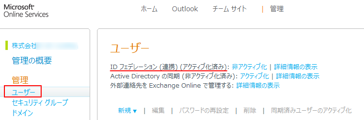4. 1~3まで完了後、Office 365側でIDフェデレーションがアクティブ化されていることを確認します。(しばらく時間がかかる可能性があります)