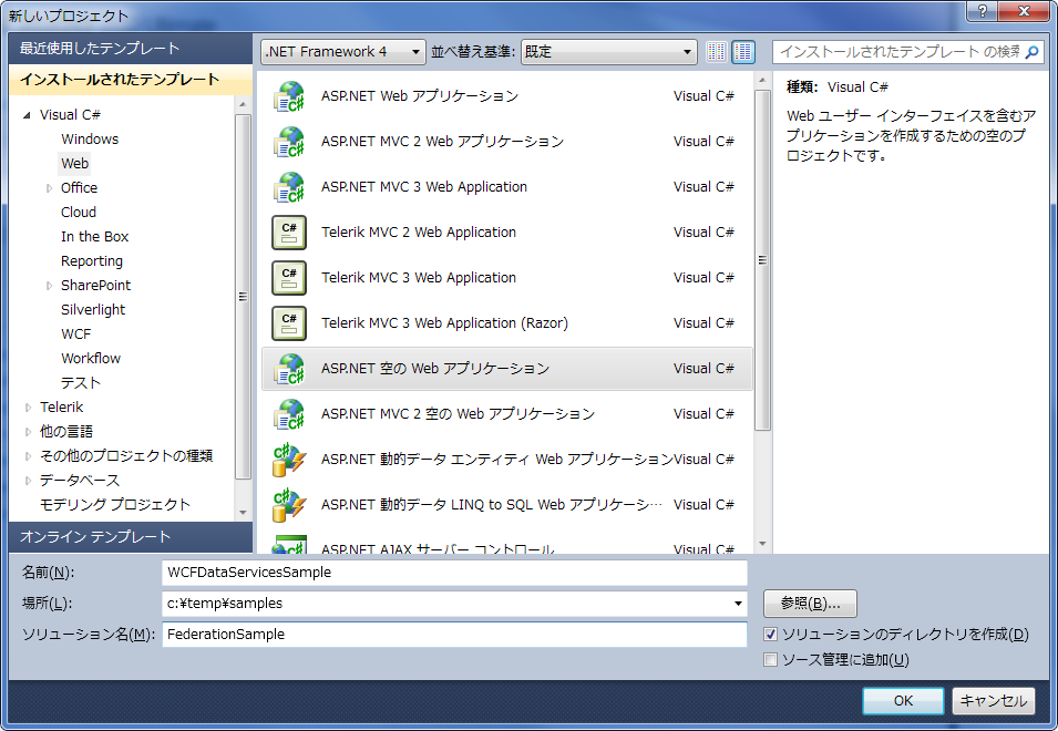 今回は実際にフェデレーション認証を利用するサービスとクライアントを作成します。