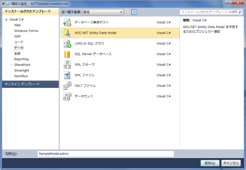 では実際に動作させてみましょう。デバッグでもいいですが、ちゃんとWCF Data Serviecsが起動していることを確認ください。