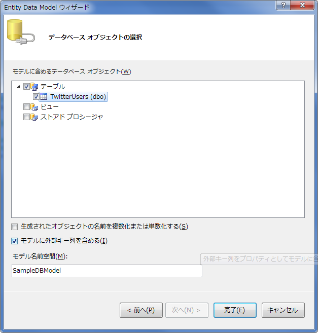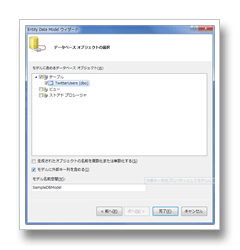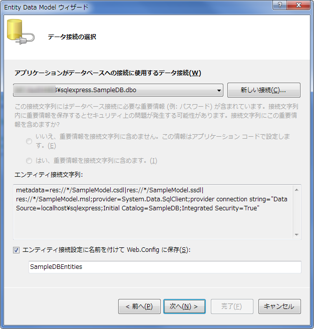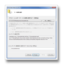 ウィザードが起動するので、サンプルで作っておいた(作っておいてください)のDBを指定していきます。