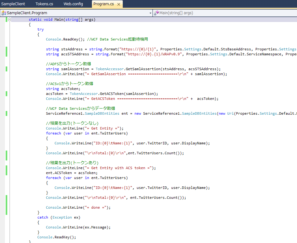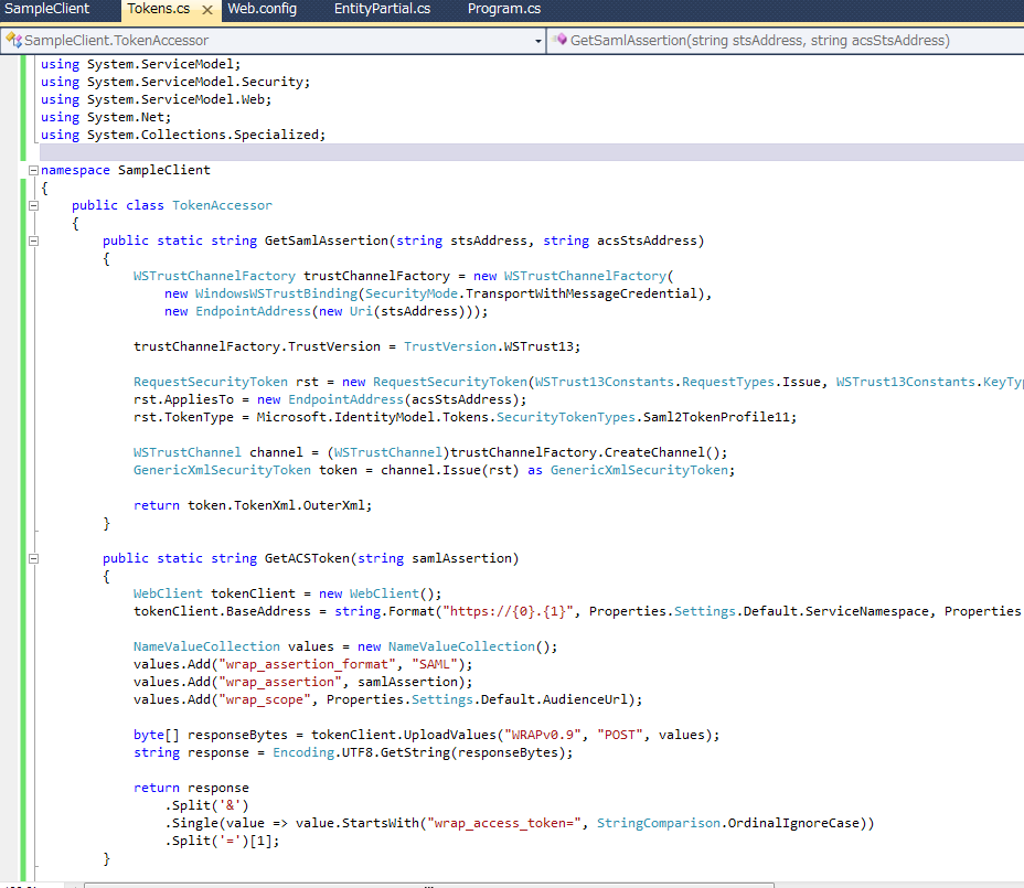 次にADFS/ACSv1へアクセスしトークンをもらうクラスを適当に作成します。
