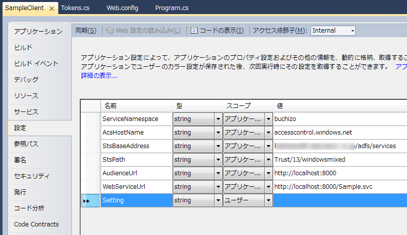 一応、接続先のURLやらADFS/ACSv1のサービス名やらは設定ファイルに出すことにします。