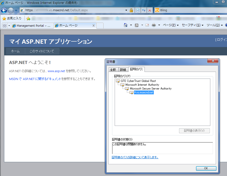 またHTTPSで接続した際も証明書エラー等無しでつながります。(証明書みると *.vo.msecnd.net で発行されていることがわかると思います)