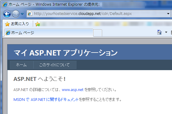 - ホストサービスのURL: http://<your hosted service>.cloudapp.net/cdn/sample.aspx