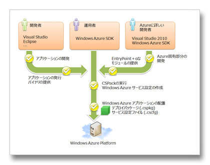 - Windows Azureに詳しい開発者がサービス定義ファイルや細かな設定、ロール固有の部分を作成