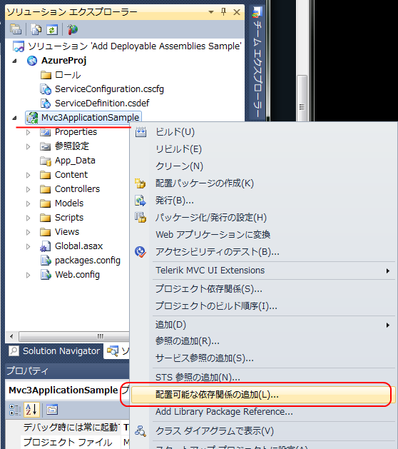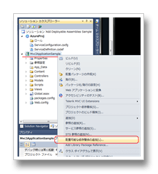 3. ASP.NET MVC3なプロジェクトを右クリックしてコンテキストメニューから「配置可能な依存関係の追加」を選択します。