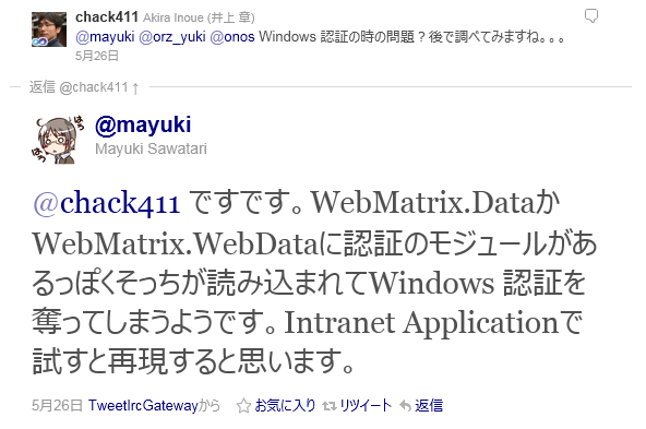 (Windows AzureなWebロールだと)あまり関係ないとは思いますが、MVC3でIntranet Applicationにした場合WebMatrix.Data.dll / WebMatrix.WebData.dll がWindows認証な処理を奪っちゃうらしく、カスタムで設定しても上書きされるとかなんとか。