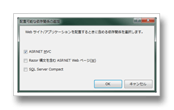 4. 追加する配置可能な依存関係の選択ダイアログが表示されるのでASP.NET MVCと、Razor構文を含むASP.NET Webページにチェックを付けます。(Razorの場合はASP.NET MVCに含まれるので修正)
