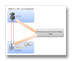 さてこのWindows Azure Connect Relayですが、以前はリージョン選べませんでした。で、既定がUSなので香港のDCと日本でWindows Azure Connectを設定したとしてもこんな感じでネットワーク的にはえらい遠回りだったようです。