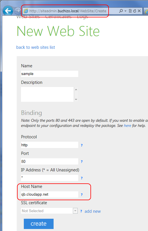 同一ポートで同一ホスト名で別アプリをバインドしたりできないのでまぁわからなくもないですが、独自ドメイン持ってなかったりする場合、既定のcloudapp.netなドメインを使ってWebアプリをホストしたいですよね?