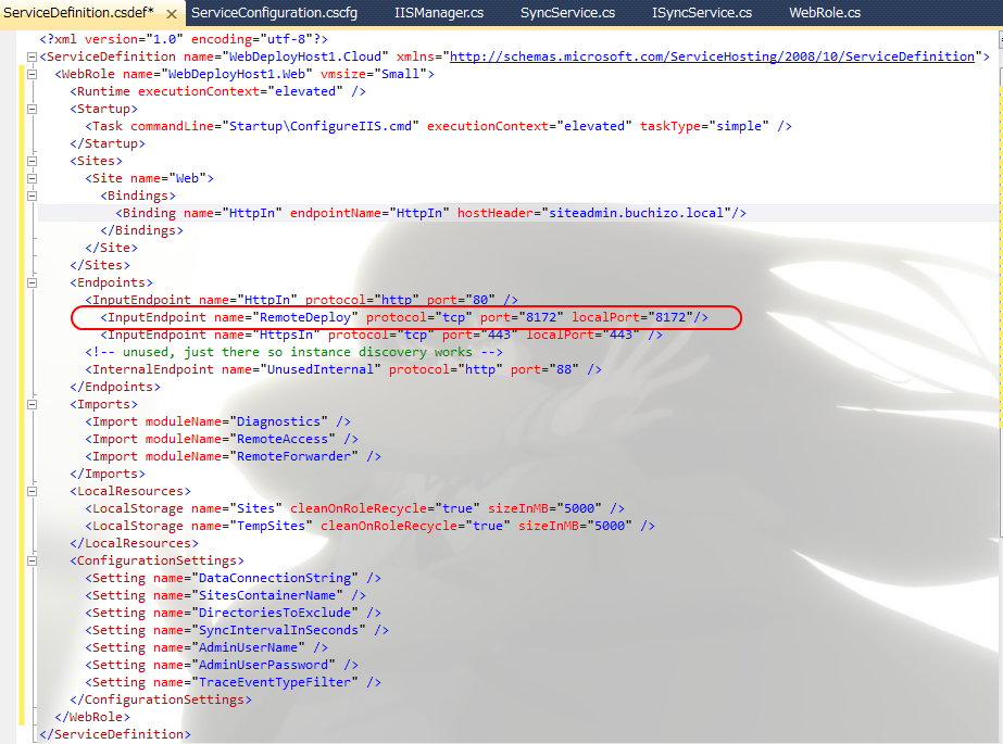じゃぁ2の方法ではどうでしょう?結論から言うと、サーバー側の準備ができてるのでサービス定義ファイルでInputEndpointを追加で定義すれば問題なく利用できます。