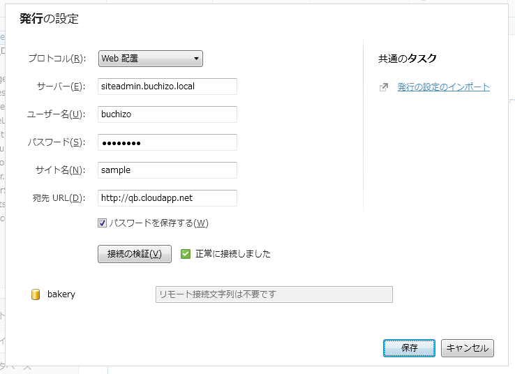 ちなみにユーザー名・パスワードはIISリモート管理側で認証を行う必要があるので、そのサーバー上(Windows Azureのインスタンス上)で有効なWindowsのユーザーアカウントとパスワードである必要があります。
