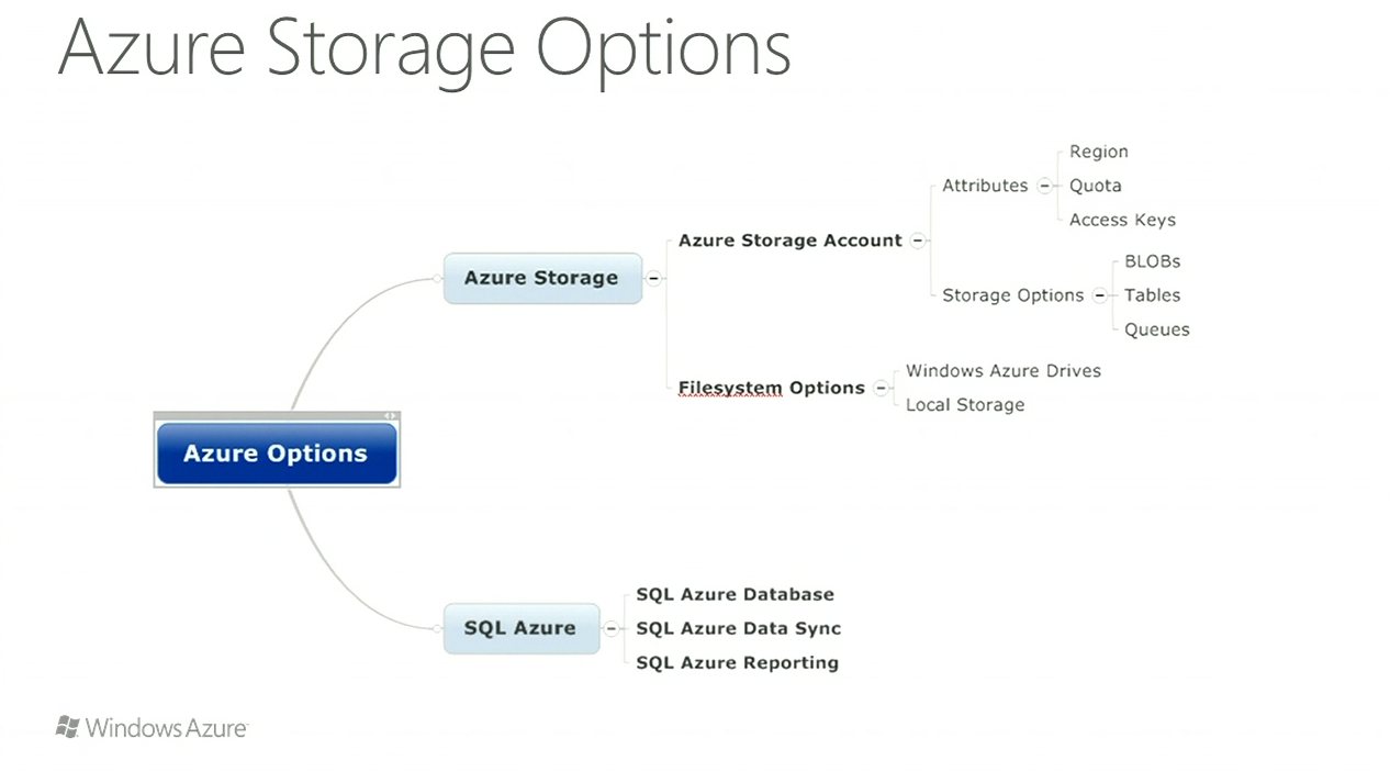 Windows Azureのデータ保持として主だったものはBlob/Table/SQL Azureの3つ。