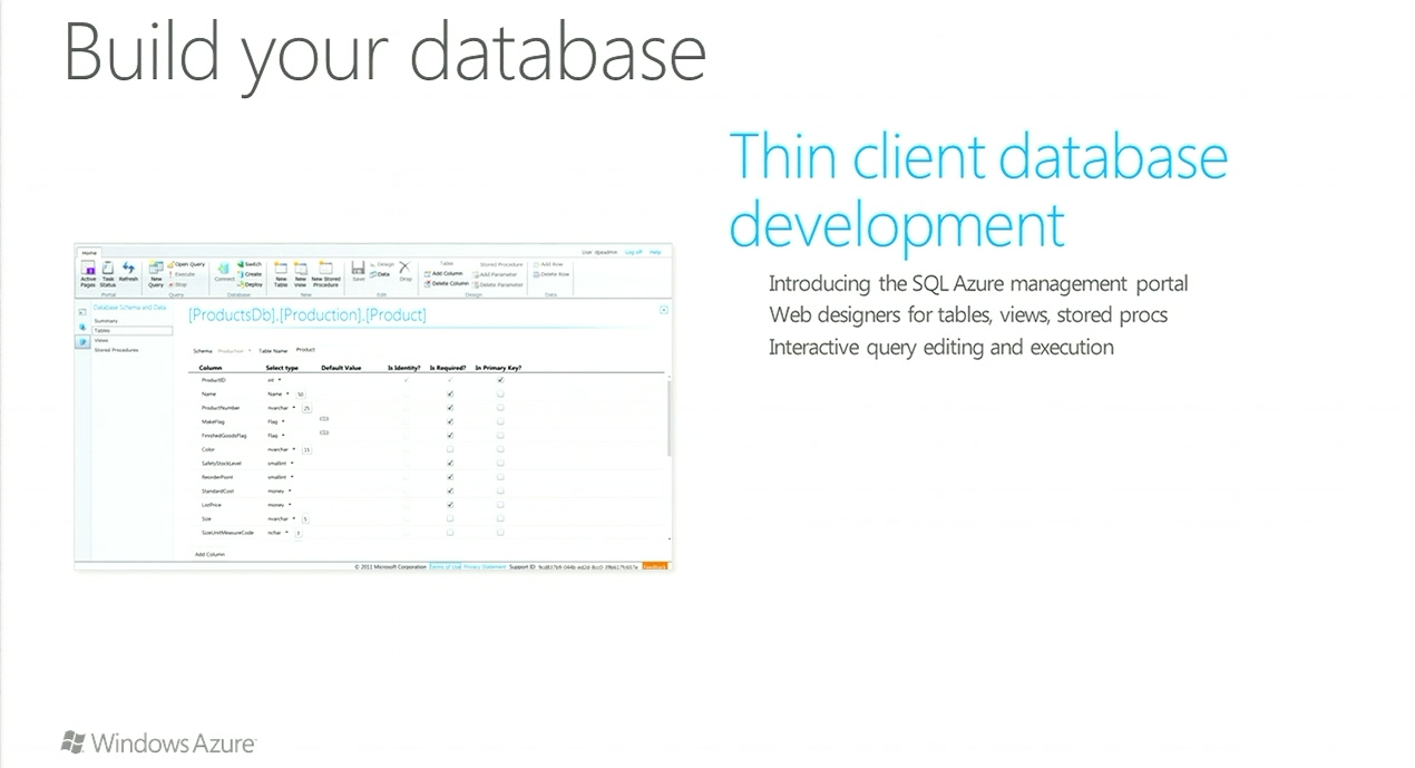 この間新しくなったSQL Azure 管理ポータルを利用するとブラウザで簡単にメンテナンスすることができます。