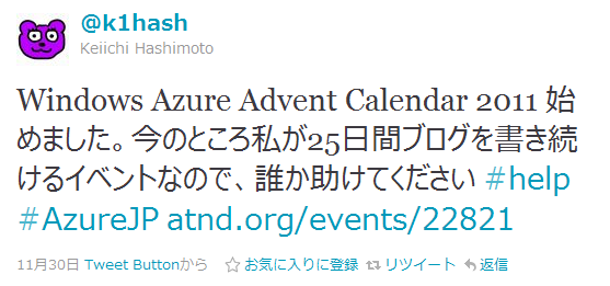 Windows Azure Advent Calendar jp: 2011 が無事完成しましたー( ゚Д゚ノノ"☆パチパチパチパチ