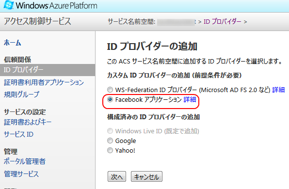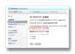 Windows Azure AppFabric ACSv2 ではいろいろなIdPと連携することができますが、Facebookもその中に含まれています。(ちゃんと個別のメニューとしてある)