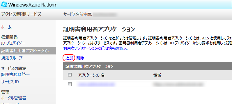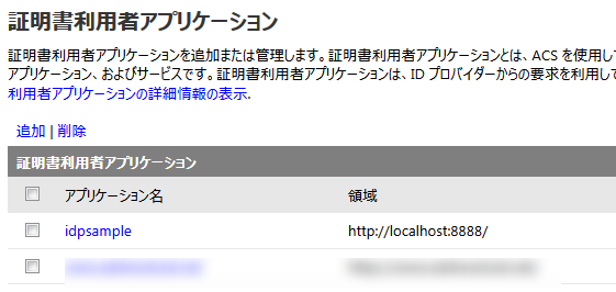 先に証明書利用者アプリケーション(連携したいWebアプリ)を追加します。
