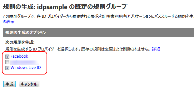 生成を選択して利用するIDプロバイダーにチェックを入れて生成します。
