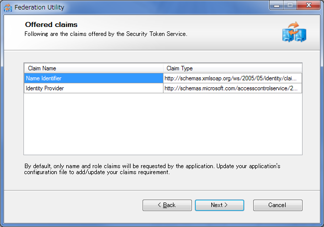 次はFederationUtlityを使ってWeb.configにフェデレーション認証に必要な情報を追加します。