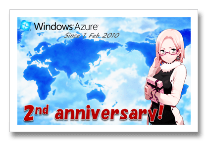 ということで、2010年2月1日から商用スタートしたWindows Azureも早いもので今日で2周年!おめでとうございます!