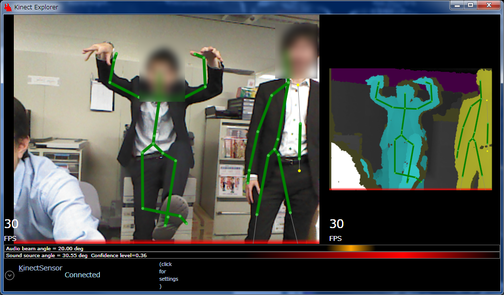 ちょっとアプリ組みたかったところですが、取り急ぎサンプルのKinect Explorerを実行してみました。