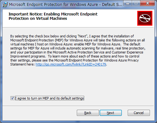 - Microsoft Endpoint Protection for Windows Azure Customer Technology Preview Privacy Statement (プライバシーに関する声明)