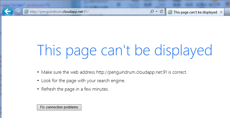 90番ポートから順にインスタンス直へのポートとして割り当てるようにInstanceInputEndpointを定義しましたので、そのようにアクセスしてみます。