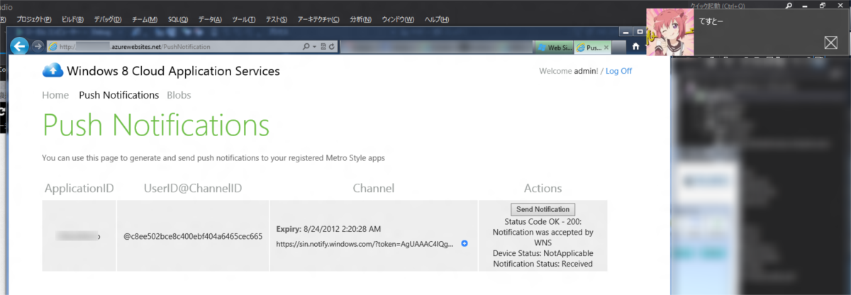 Windows Azure Toolkit for Windows 8を使うとPush通知用のサーバーをWindows Azure上で構築したりする雛形をゲットできます。