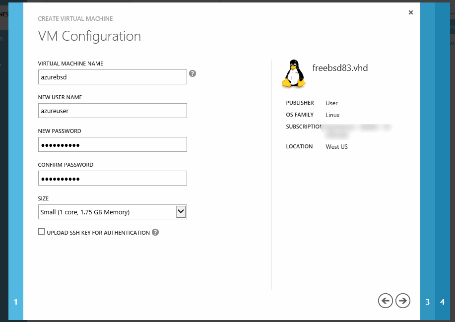 Notes: “virtual machine name” and “new user” in VM Configuration is not supported, because does not running WALinuxAgent on FreeBSD VM.