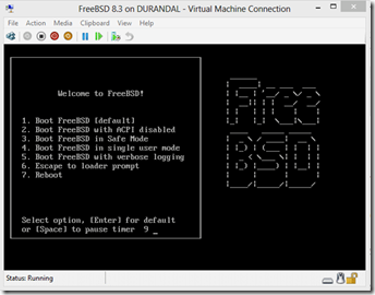 FreeBSD VM install in the same way as a normal guest OS on Hyper-V using FreeBSD 8.2 ISO.