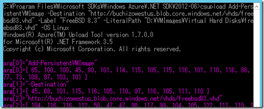 Notes: Current version of csupload Add-PersistentVMImage command is support the “Windows” or “Linux” OS argument. I think the case of FreeBSD is better to specify the “Linux”.
