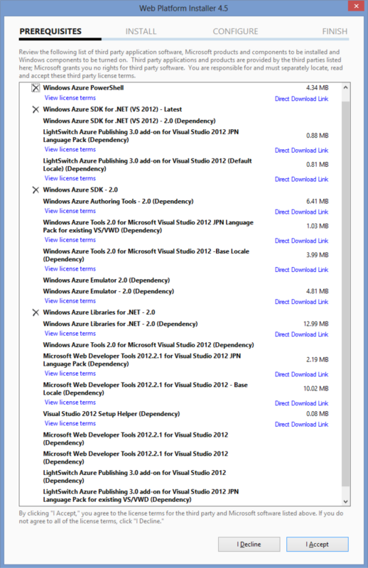 インストールはWeb Platform InstallerからAzureで検索して入れるのが便利です。